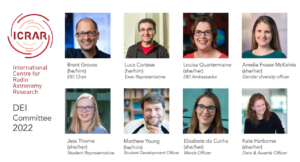 ICRAR attracts and recruits staff, students and visitors nationally and internationally from diverse backgrounds of culture, race, gender and age for their excellence in research and development. ICRAR-UWA The Development, Equity and Inclusion (DEI) committee was established in October 2014 as part of an ICRAR-wide initiative to foster matters related to equity, inclusion and development. DEI’s objective is to strengthen the quality of ICRAR-UWA as a workplace, by taking measures to promote equity and inclusion across genders and cultures, as well as to help the professional development of students and early-career researchers (ECRs). The committee runs various activities and makes recommendations to ICRAR’s Executive team.