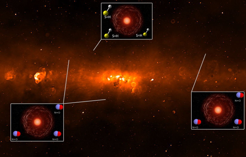 Image: The centre of the Milky Way with organic and inorganic molecules inset