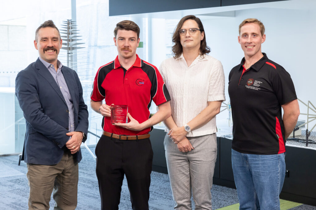 ICRAR-UWA recipient Ayden McCann, with his supervisors Professor Sascha Schediwy, Dr Lyra Walsh, and Dr David Gozzard.