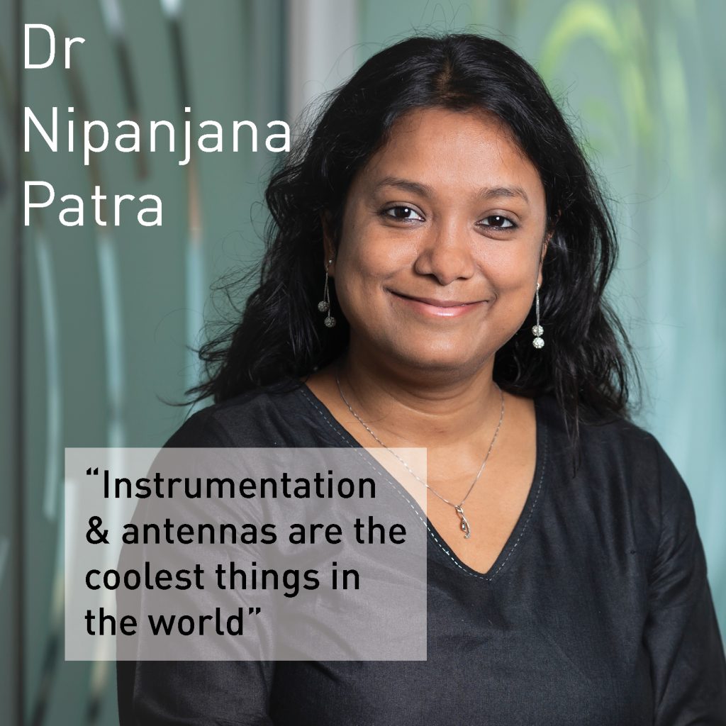 Dr Patra believes there is an important role to play between engineers & astronomers and enjoys being able to bridge the gap between what the scientists want to measure and what the engineers will be able to build. She is also keenly interested in laying the groundwork to design a radio telescope that can be sent on space missions for redshifted 21cm cosmology.